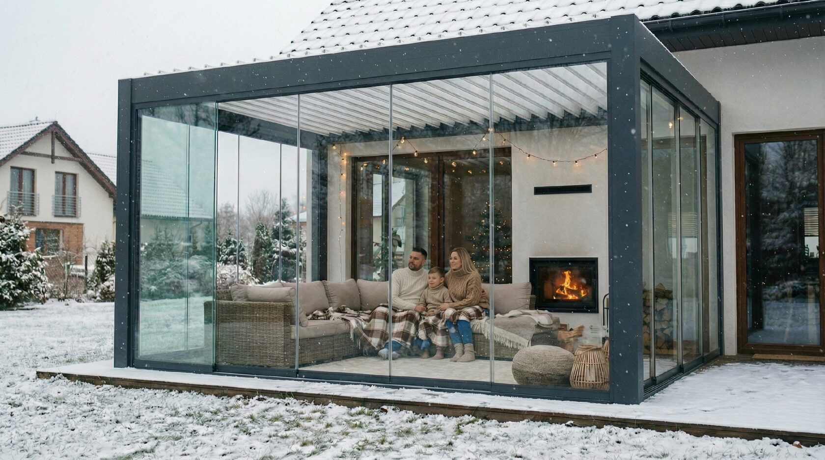 Если вы хотите пользоваться перголой не только в тёплый сезон, рекомендуем установить безрамное остекление RALUMA в свободные проемы. Это сохраняет панорамный вид, защищает от ветра и осадков, позволяет хранить мебель и проводить мероприятия круглый год. Безрамное остекление сохраняет световой проем и не нарушает эстетику перголы, а в сочетании с биоклиматической крышей вы получаете универсальную уличную комнату.