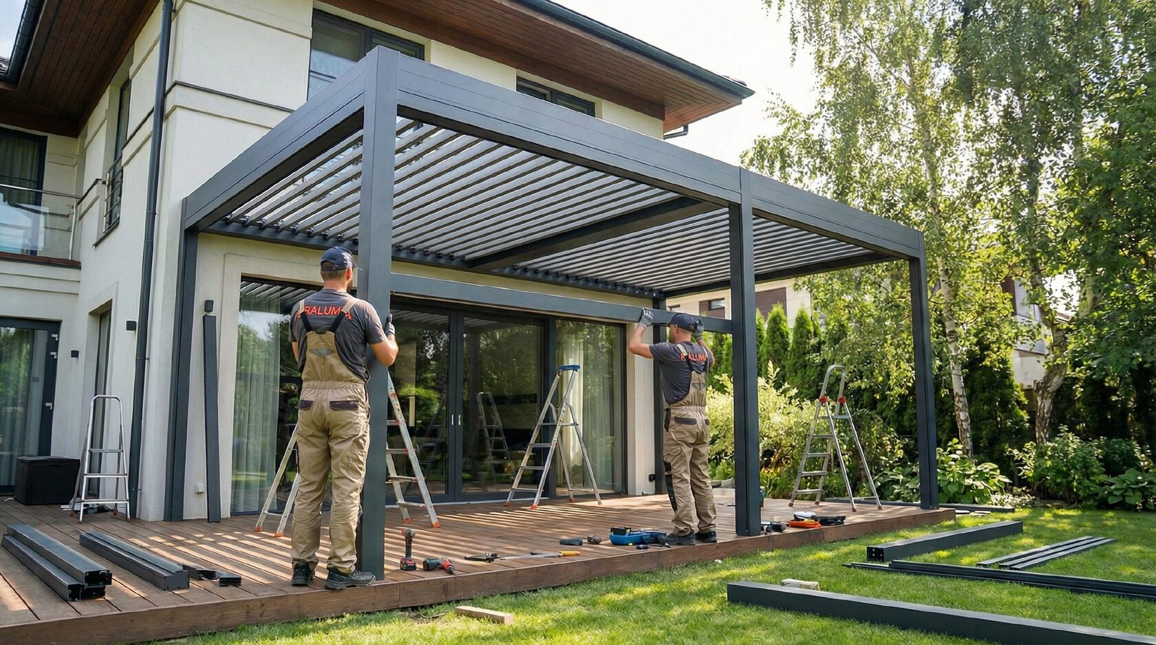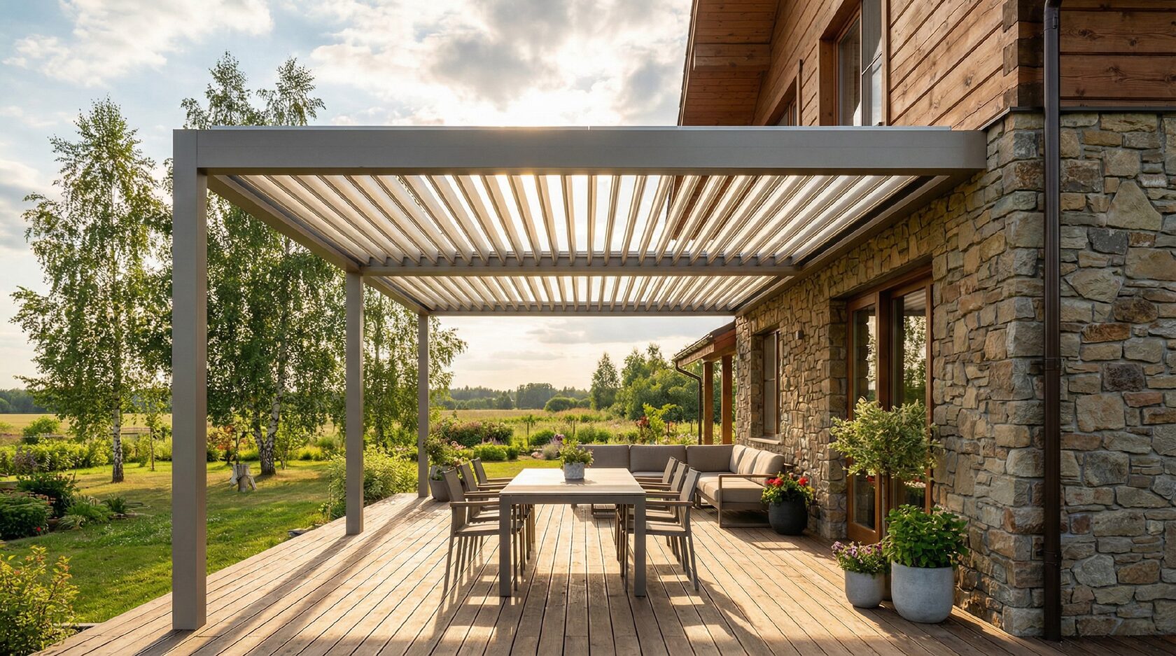 В RALUMA мы производим алюминиевые перголы (не деревянные), в том числе биоклиматические с регулируемыми ламелями — современное решение для контроля света, вентиляции и микроклимата на вашей террасе.