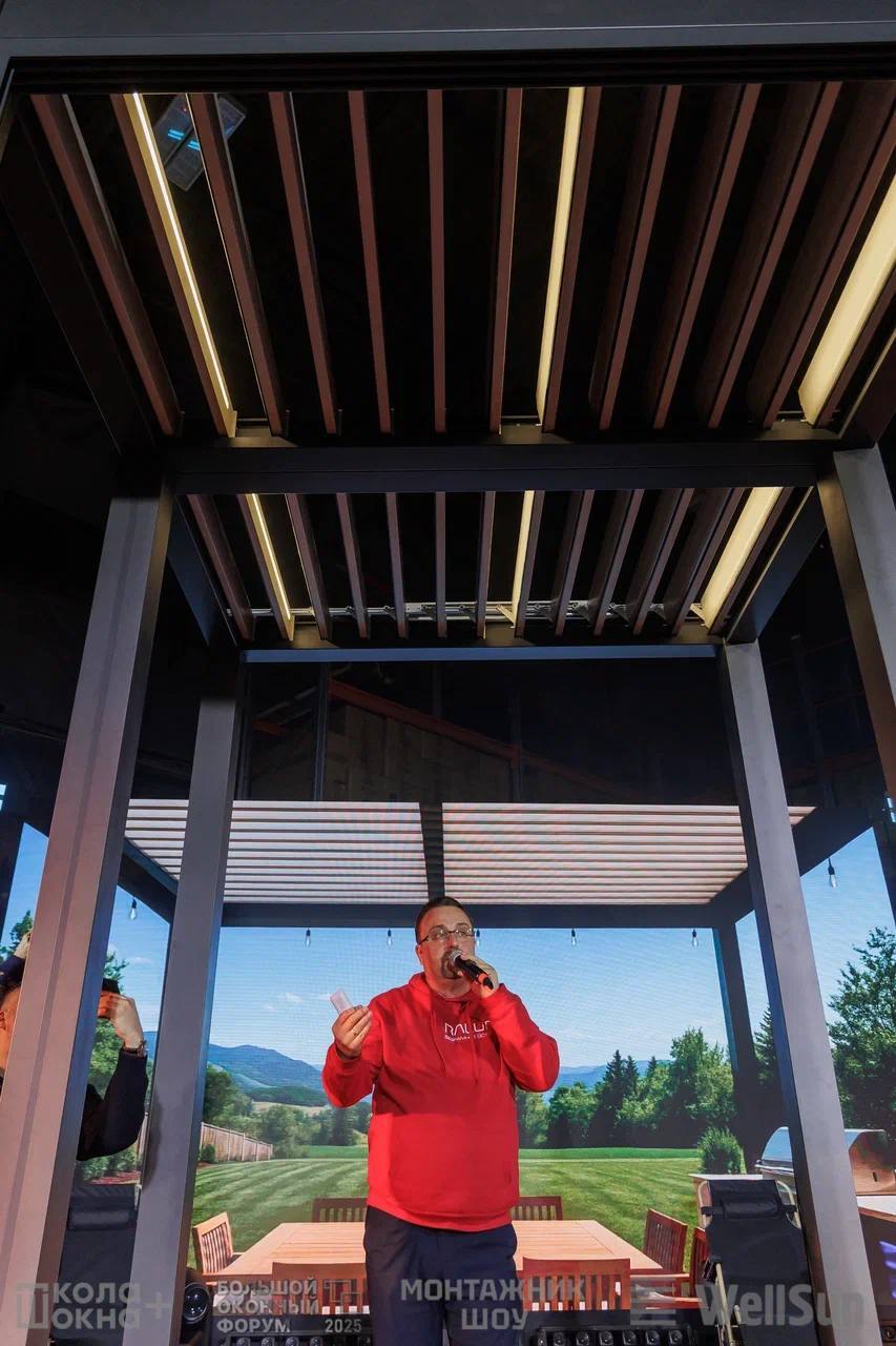 - Производство. Пергола изготавливается под заказ: профиль, покрытие, механика, электрика, остекление.