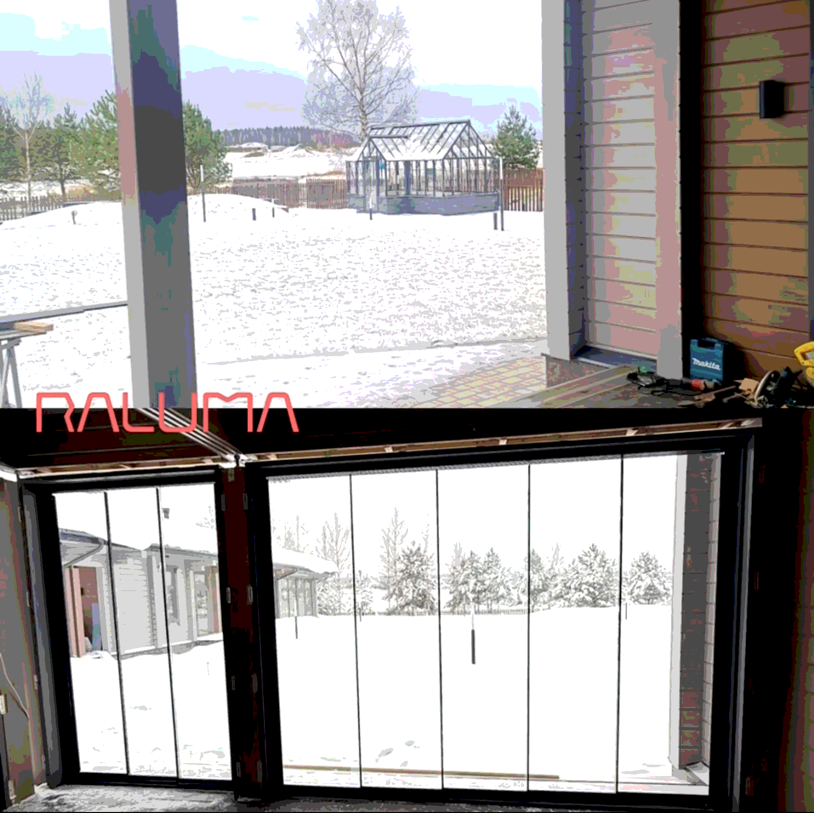 Перед командой Raluma стояла задача оформить домашний барбекю‑комплекс — уличную кухню, где одновременно важны и эстетика, и функциональность. Были застеклены два проёма: один — с использованием слайд‑системы, обеспечивающей лёгкое горизонтальное скольжение панелей; второй — сдвижной вертикально‑подъёмной системой, позволяющей эффективно трансформировать пространство. Такое сочетание даёт возможность менять конфигурацию террасы в зависимости от погодных условий и сценариев использования — от полного закрытия до открытой площадки для готовки и приема гостей.